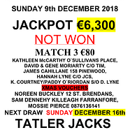 JACKPOT €6,300 NOT WONMATCH 3 €80KATHLEEN McCARTHY O`SULLIVANS PLACE,DAVID & GENE MORIARTY...