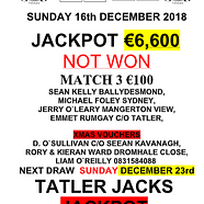 JACKPOT €6,600 NOT WONMATCH 3 €100SEAN KELLY BALLYDESMOND,MICHAEL FOLEY SYDNEY,JERRY O`LEARY M...